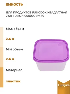 Емкость для продуктов квадратная 2,6л Fusion, 1 шт