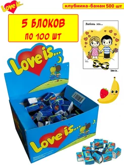 Жевательная резинка Love is клубника банан 5 блоков по 100шт