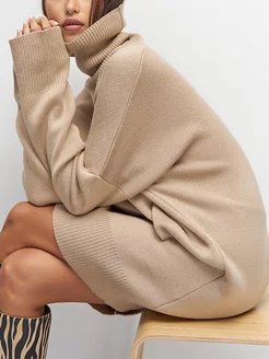 Платье свитер с горлом вязаное теплое