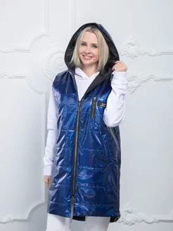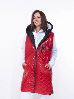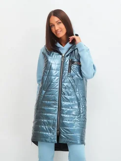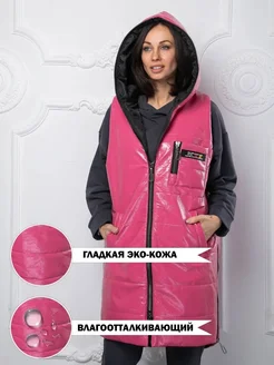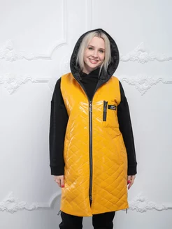 Жилет утепленный безрукавка с капюшоном длинный стеганый