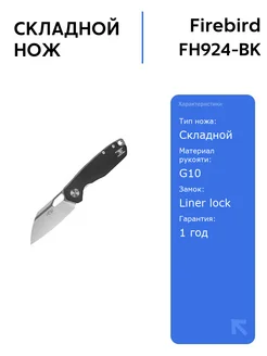 Складной нож FH924-BK D2 Steel, Черный, EDC