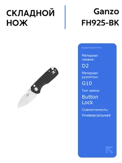 Складной нож by Ganzo FH924-BK D2 Steel Black