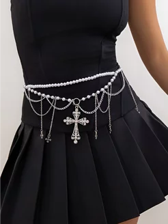 Цепочка на пояс с готическим крестом и бусинами