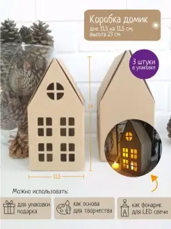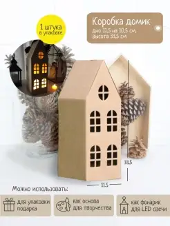 Подарочная коробка картонная Домик новогодняя