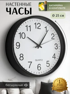 Часы настенные интерьерные круглые бесшумные для кухни 25 см
