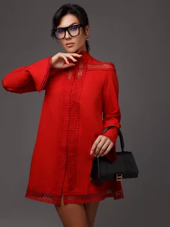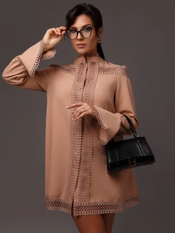 Платье-рубашка короткое с длинным рукавом