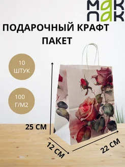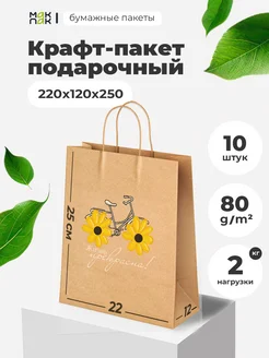 Подарочный крафт пакет с рисунком и ручками 22х12х25см,8 шт