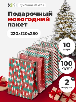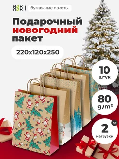Новогодние подарочные крафт пакеты НГ 22х12х25см,10 шт