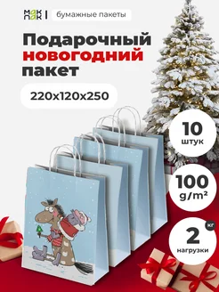 Новогодние подарочные крафт пакеты ДМ и конь22х12х25см,10 шт