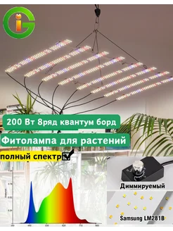 лампа для растений и рассады фитолампа 200Вт полного спектра