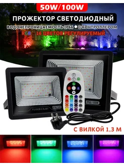 Прожектор светодиодный уличный RGB 16 цветов 100Вт с вилкой