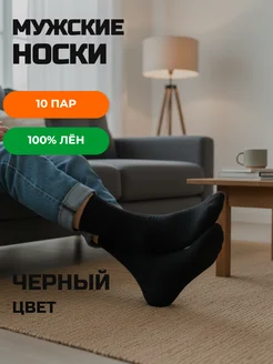 Носки 100% лён чёрные 10 пар Original высокие Набор