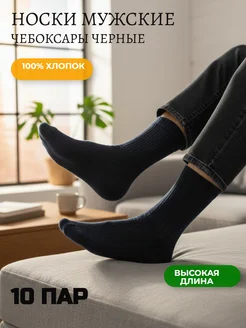 Носки 100% хлопок чёрные 10 пар Original высокие Набор