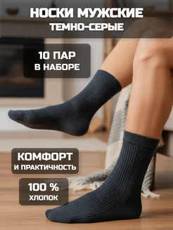 Носки 100% хлопок тёмно-серые 10 пар Original высокие Набор