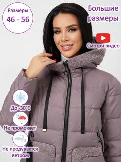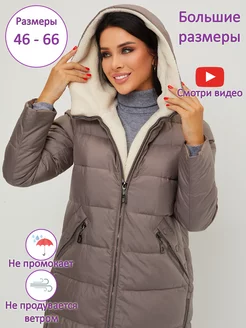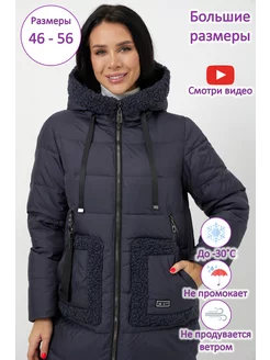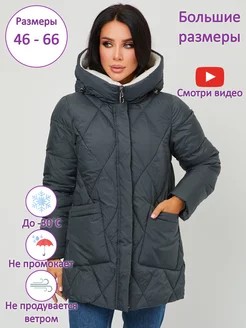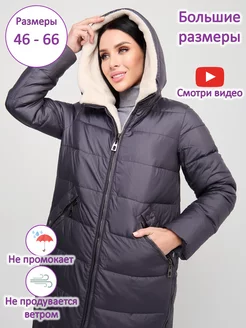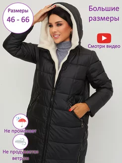 Куртка зимняя больших размеров пуховик длинный с капюшоном