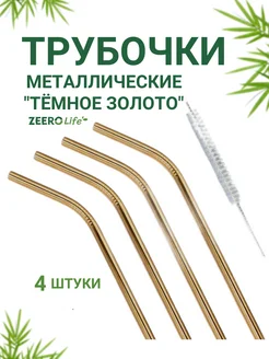 Многоразовые "золотые" изогнутые трубочки 4+1