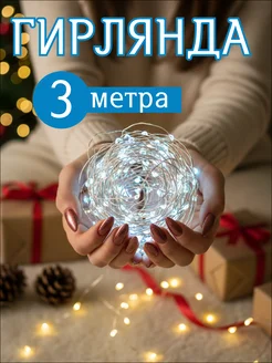 Гирлянда роса на елку на окно 3 метра на батарейках