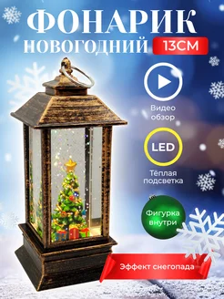 Новогодний фонарь со снегом светильник с подсветкой елочкой