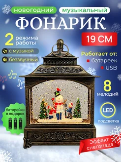 Новогодний фонарь со снегом светильник с подсветкой снеговик