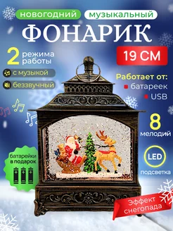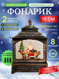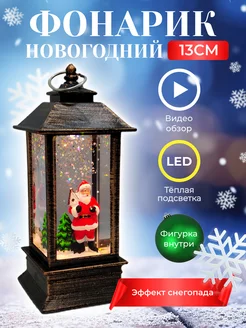 Новогодний фонарь со снегом светильник подсветкой дед мороз