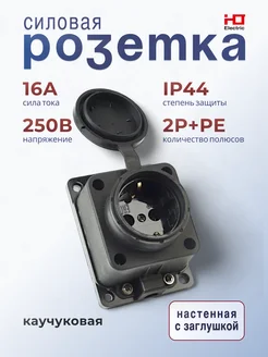 Розетка настенная с заглушкой каучук 2Р+РЕ 16А 250В IP44