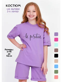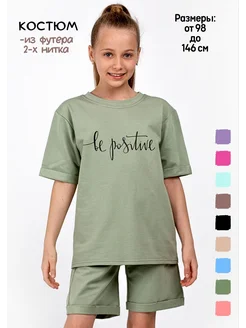Спортивный костюм для девочки оверсайз шорты и футболка