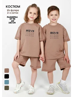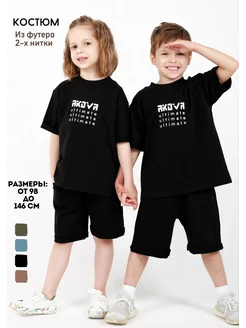 Спортивный костюм для подростка шорты и футболка оверсайз