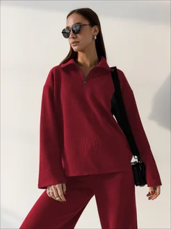 Костюм двойка трикотажный с брюками оверсайз полузамок