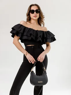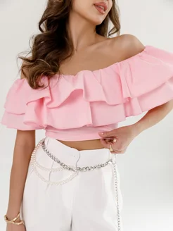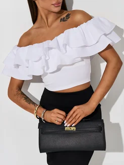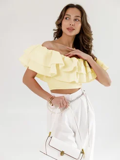 Нарядный вечерний топ бандо с открытыми плечами и воланами