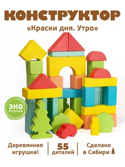 Конструктор детский кубики деревянные "Утро" 55 деталей