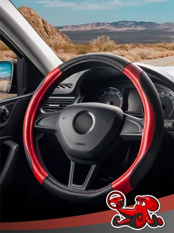 Чехол оплетка на руль искусственная кожа, Red, 38 см