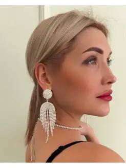 Серьги бижутерия длинные висячие со стразами