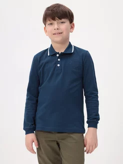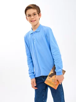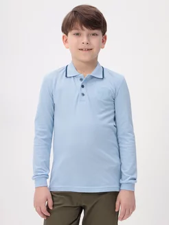 Трикотажная рубашка-поло голубая тенниска с длинным рукавом