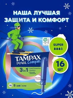 Pearl Compak Super Plus, тампоны с аппликатором, 16 шт