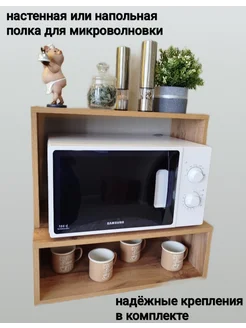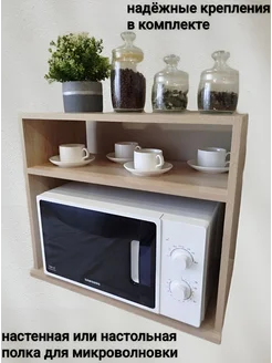 Полка для свч микроволновки настенная, настольная. дуб вотан