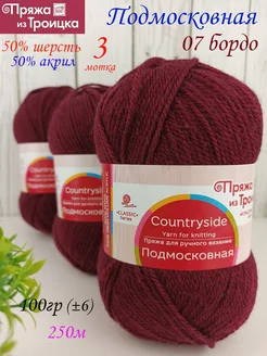 Подмосковная пряжа троицкая 07 бордо 3 мотка