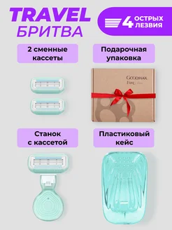 Бритва женская мини станок 4 лезвия, 5 сменных кассет