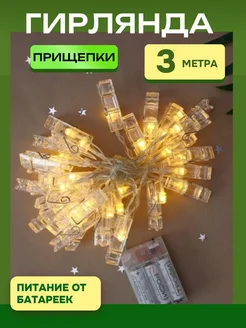 Гирлянда с прищепками от батареек 3м