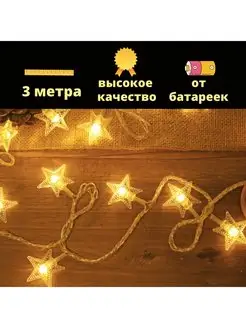 Гирлянда Звёзды 3м от батареек тёплый свет
