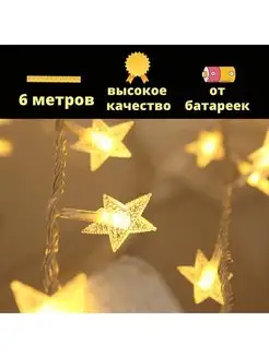 Гирлянда Звёзды 6м от батареек тёплая