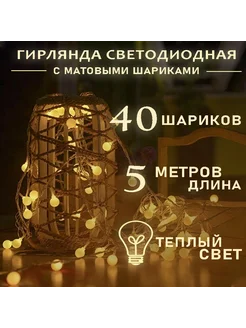 Гирлянда с матовыми шариками 5 метров 50 LED от батареек