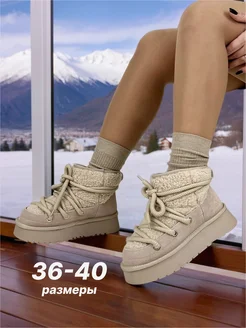 Угги мунбуты со шнурками луноходы короткие на платформе