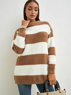 Свитер оверсайз пушистый с вырезом удлиненный