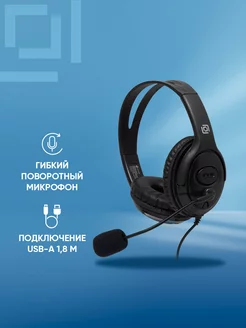 Наушники с микрофоном Оклик HS-M400 черный 1.8м