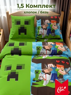 Постельное белье 1.5 для мальчика хлопок 70х70 minecraft