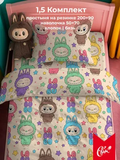 Постельное белье 1.5 детское на резинке подарочное Лабубу