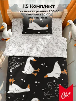 Постельное белье 1.5 на резинке хлопок 200х90 Гусь