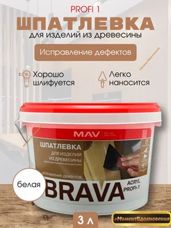 Акриловая Шпатлевка по дереву МАВ Brava profi-1 белая 3л
