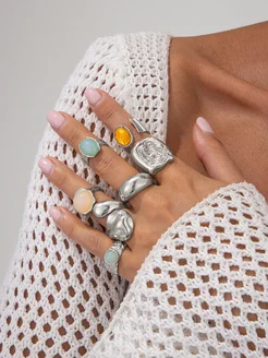 7 Pieces Trendy Acrylic Rhinestone Open Ring Jewelry