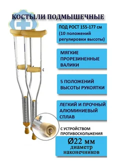 Костыли подмышечные регулируемые для взрослых 2 шт